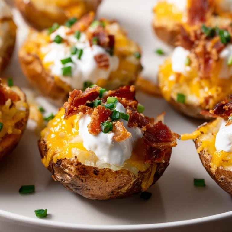 Pin This There's something about a crispy potato skin that makes people's eyes light up at a party. I learned this the hard way when I brought a tray of these to a potluck and watched them disappear in under ten minutes while I was still arranging napkins. The first time I made them, I was trying to impress my roommate's friends and accidentally overloaded mine with cheese, but somehow that mistake turned into the best batch—golden, bubbling, absolutely irresistible. Now whenever I need something that feels special but doesn't require fussing, these are my go-to move.