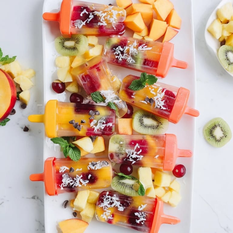 Take your time arranging the fruit and toppings artfully to create a feast for the eyes as well as the palate. Ensure the popsicles freeze completely for easy removal. Using a variety of colorful fruits enhances both taste and presentation.
