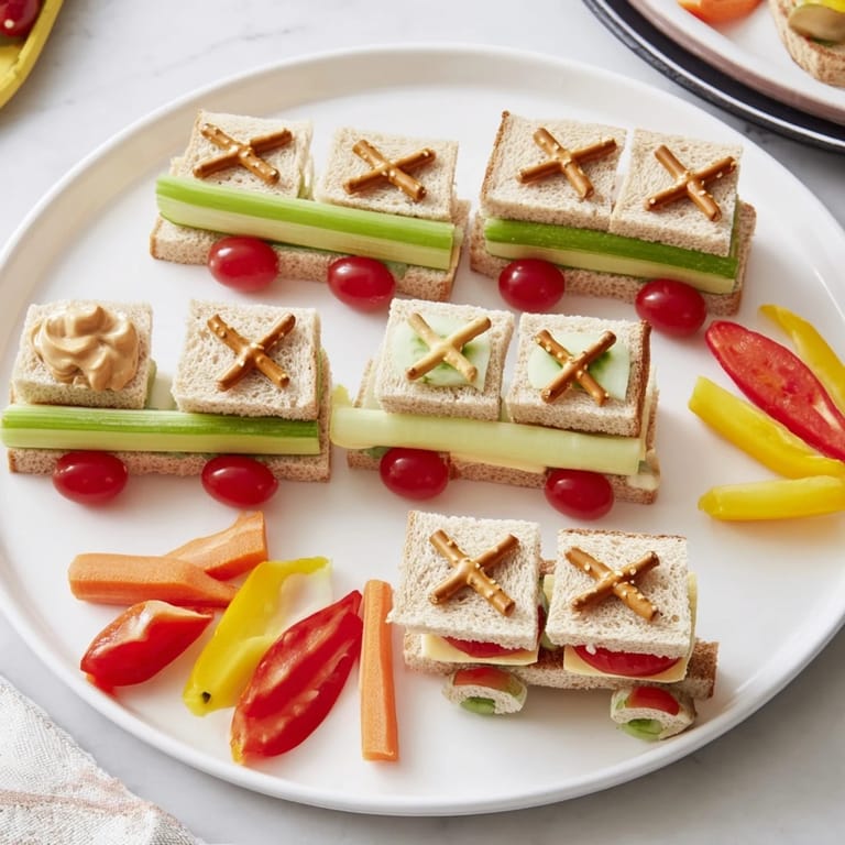 Pin This A playful and creative lunch platter featuring assorted sandwiches arranged to look like train cars running along edible tracks—perfect for delighting kids and encouraging healthy eating.